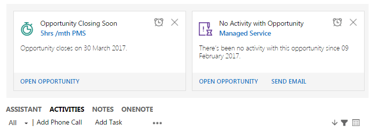 Empower your business with D365’s Assistant – a feature that summarises your daily actions and communications completed or waiting regarding your customer base. Information is displayed using easy to read action cards, providing users with a clear understanding of what is happening across your business.