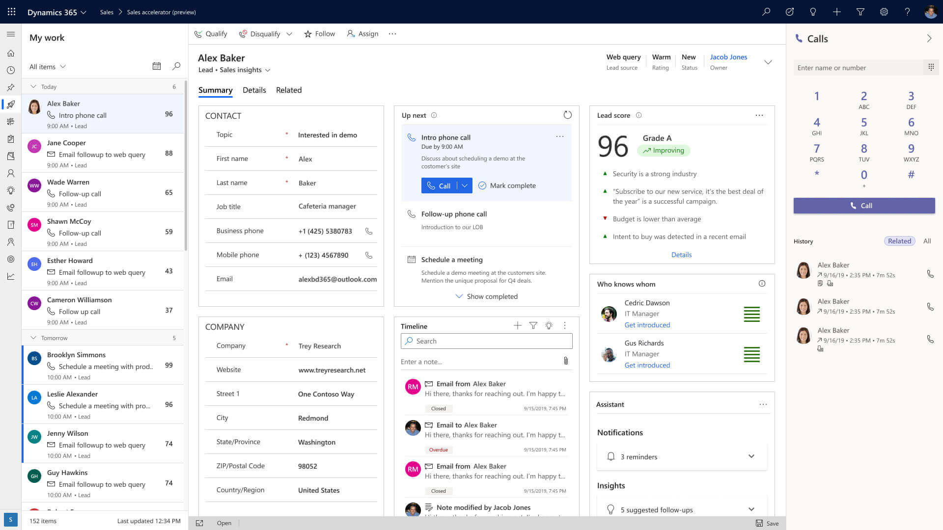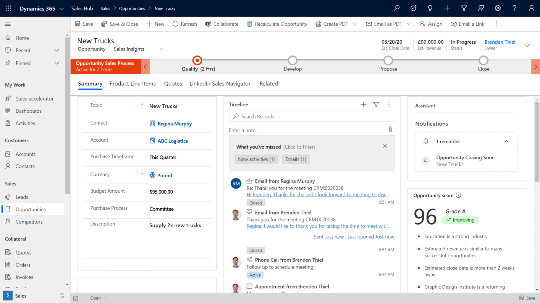 Dynamics 365 Sales makes it easy to stay on top of your leads, it automatically identifies high-potential leads and prioritises them based on their readiness to make a conversion. By focusing resources on the most promising opportunities, sales teams can increase conversion rates and drive revenue growth.