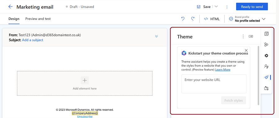 Complementing the Content Ideas feature is the Copilot Theme Assistant, which automatically generates a design theme for an email, based on the existing branding of a website.