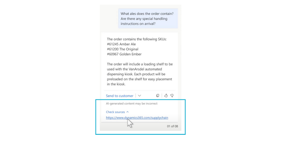 Customer services representatives can easily understand how Copilot has generated any responses, providing better citations of sources. This allows representatives to validate the accuracy of information and provide a positive customer experience.