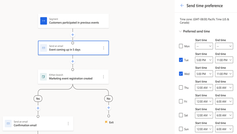 This also allows you to optimise send times to when your business has the right resource to respond to actions, such as setting the timing to when you have salespeople available.