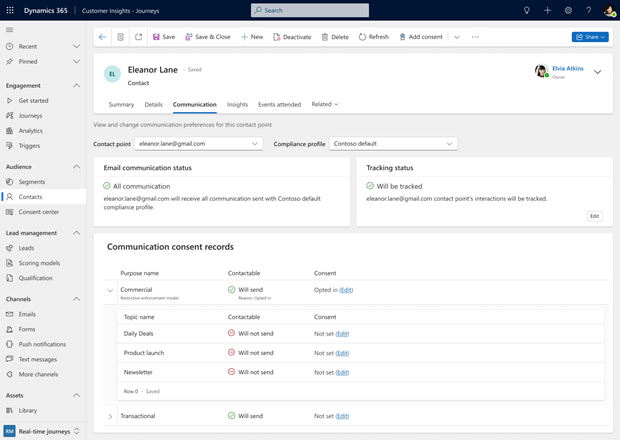 Enhanced contact and lead forms will allow users to quickly check customer content, ensuring that you are sending the correct communications to customers. This comprehensive view allows you to see if someone has opted out of all communication from your business, or just specific topics/channels.