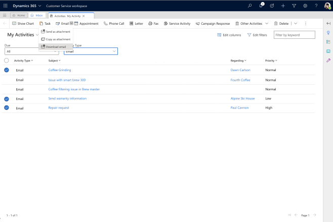 - Use Copilot email assistance to help write engaging sales emails to customers