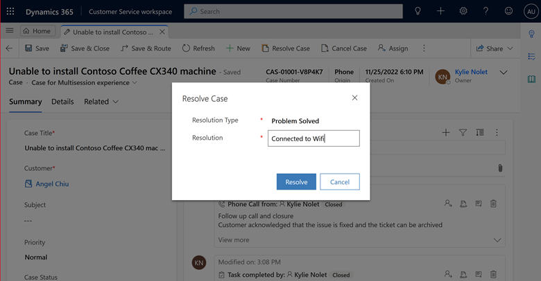 - Simplified case resolutions: The improved case resolution box provides a better user experience, as it is now easier to use than ever. Additionally, any unresolved activities are automatically flagged when the overall case is resolved, leading to faster resolutions
