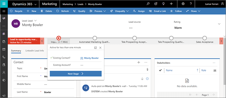 To support seamless handovers between marketing and sales, Dynamics 365 enables teams to define qualification criteria and automatically progress leads through the pipeline. Workflows can be configured to update lead statuses, assign records to the correct sales team, and log qualification actions- ensuring that every lead is handled efficiently, and nothing falls through the cracks.