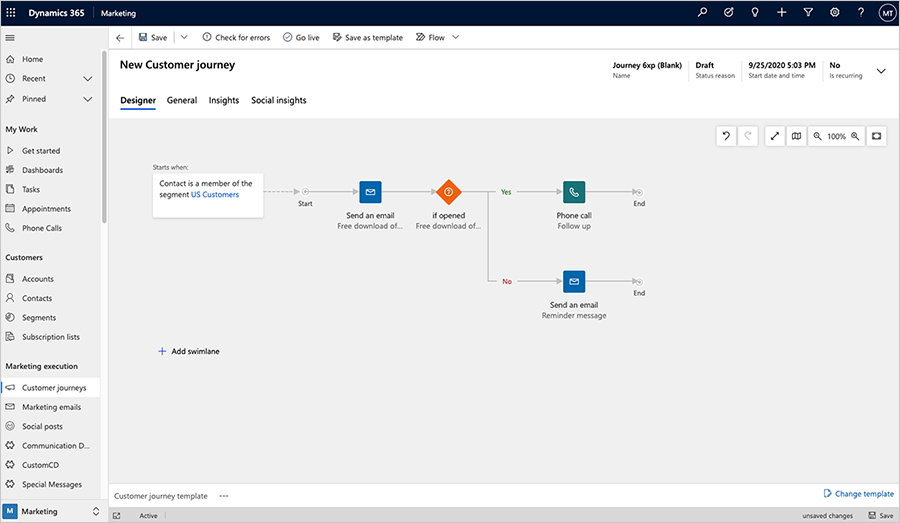 - Customer journeys: Automate activities that are mapped on a customer journey, making the overall re-engagement process a much smoother process. Once the system identifies that a manual step is needed from a user, such as a phone call follow-up, an activity is automatically created to do so
