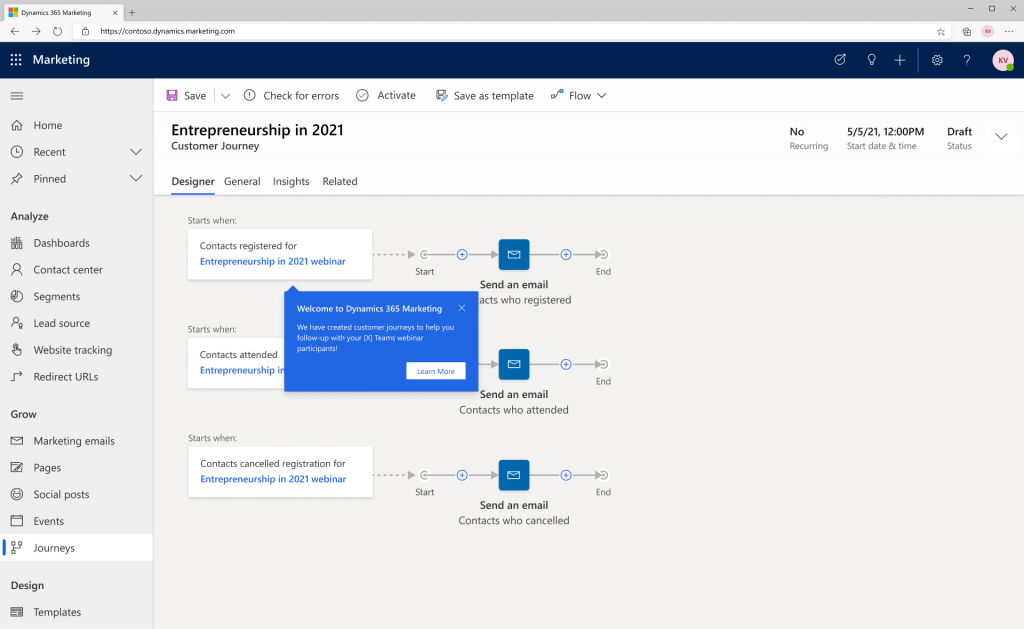 - Deeper personalisation to engage your customers – Participant engagement-based communication for online events powered by Microsoft Teams, Use customer journeys to target leads in addition to contacts