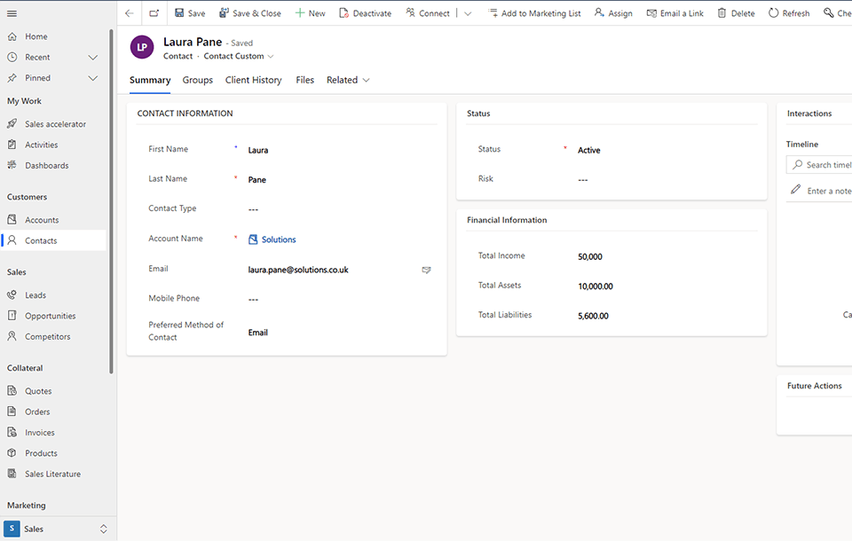The features within Dynamics 365 are fully customisable; here are some examples of commonly utilised capabilities by our Financial Services clients.