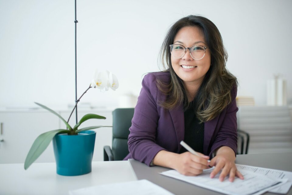 Woman pitching CRM System for Financial Services using Dynamics 365