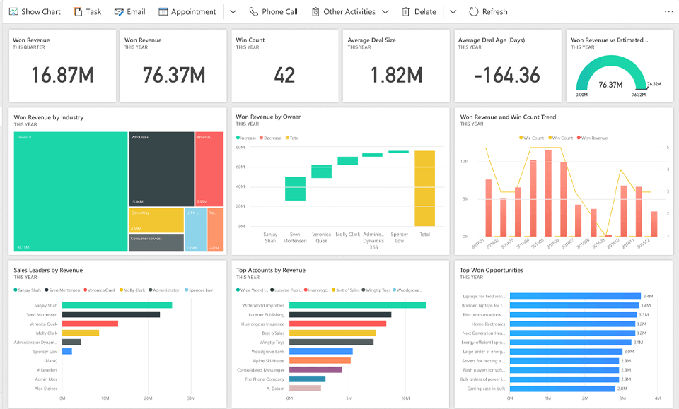 CRM System for Financial Services - Dynamics Dashboard Snippet