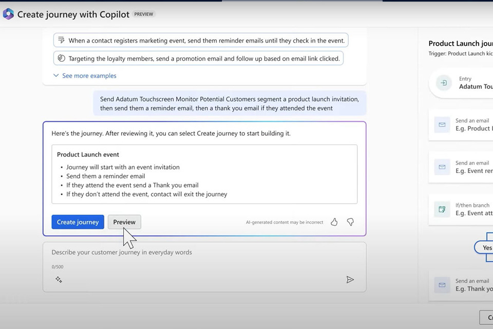 Copilot brings AI-powered assistance directly into Customer Insights – Journeys. You can use natural language prompts to create customer journeys, generate and refine marketing emails, and build audience segments. This reduces manual effort, speeds up campaign delivery, and helps your team stay focused on strategy and engagement.