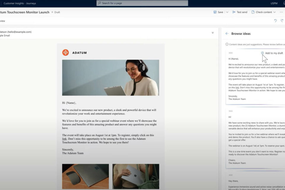- AI & Copilot: Streamline campaign creation with Copilot. Use natural language prompts to build segments, write and refine email content, select images, or even generate complete customer journeys.