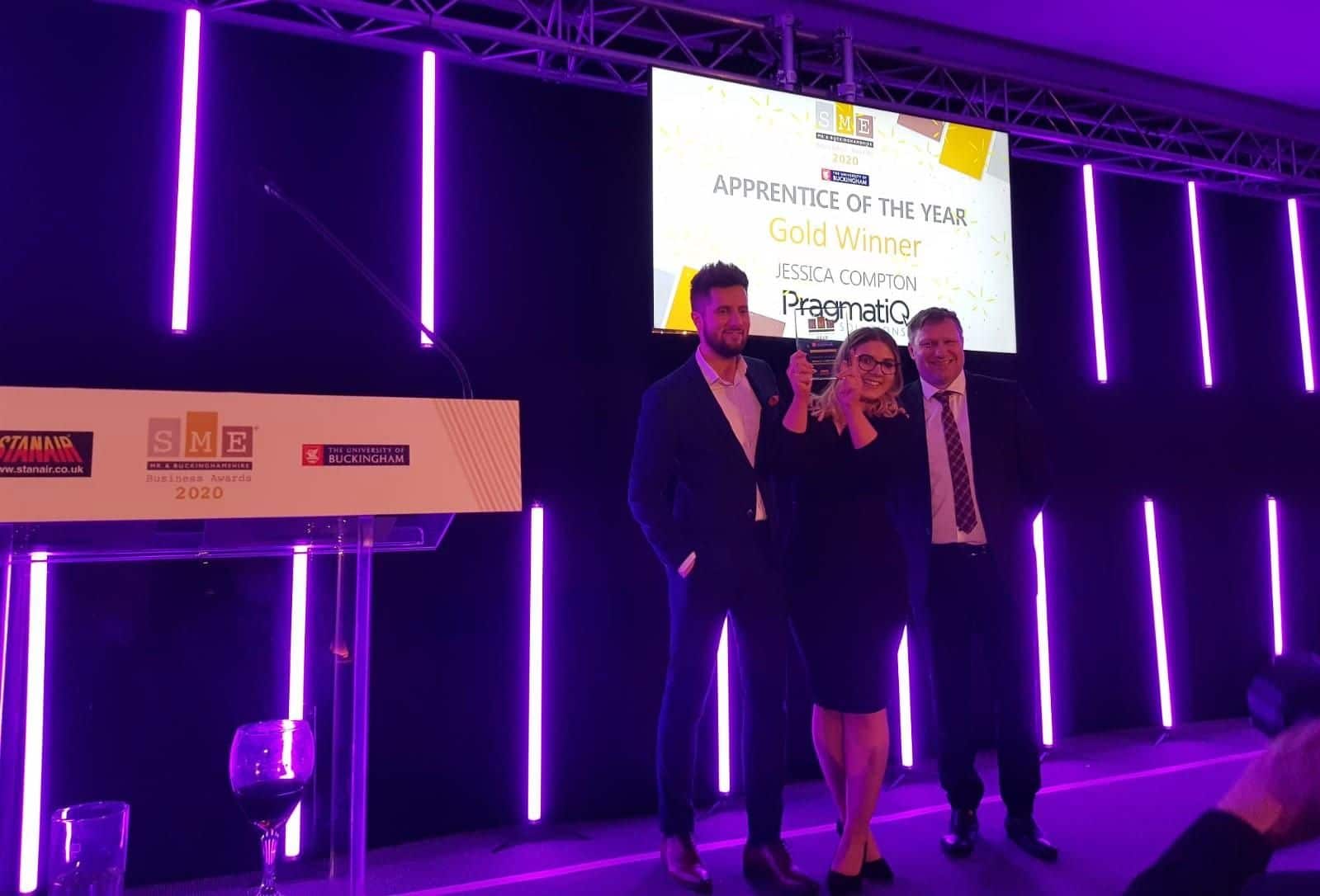 Last week, we attended the SME MK & Bucks Awards 2020 at Whittlebury Hall, where our Marketing Co-Ordinator Jessica Compton, won ‘Apprentice of the Year’. Jess has been completing her BSc Marketing Management degree at the University of Northampton whilst working for the business since 2018. This prestigious award is a fantastic achievement and a real reflection of Jess’s hard work and dedication over the last couple of years