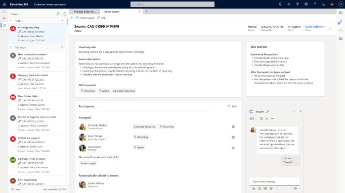 When it comes to complex cases, input from co-workers across various departments is often required to resolve these. Users can swarm cases in the applications they are accustomed to using, including Customer Service workspace and Microsoft Teams.