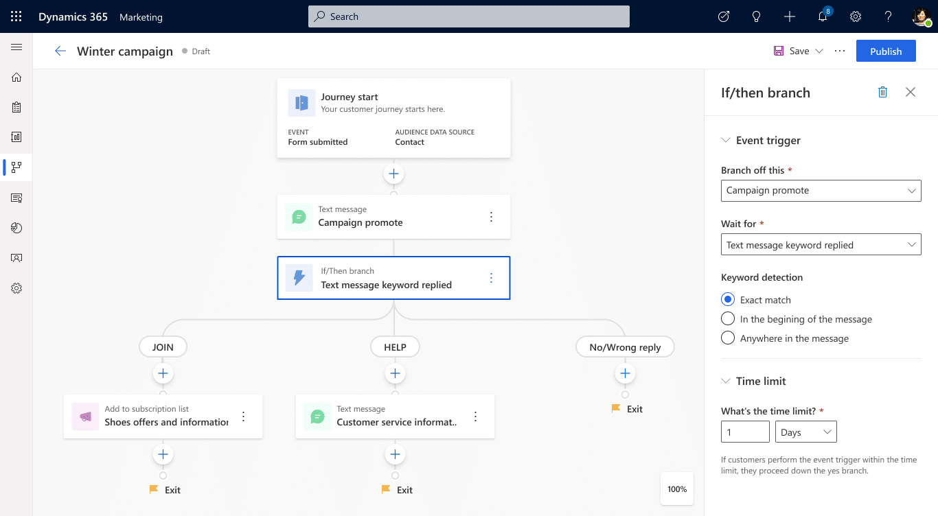 SMS allows you to communicate with customers, however just sending an initial message is not enough, it is important to act on responses. Users can now create customer journeys based on SMS replies, to continue the conversation.