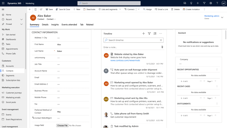 - View both real-time and outbound marketing activities in the Dynamics 365 unified timeline