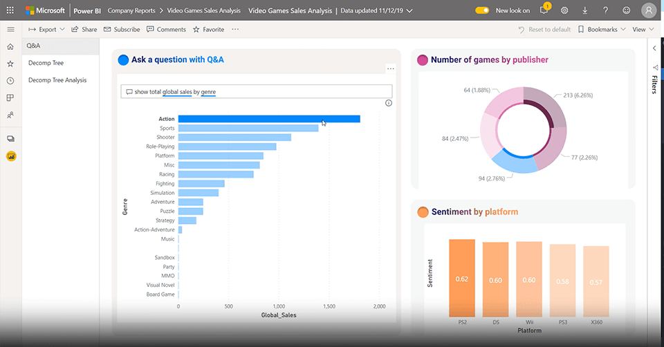 - Easily embed Power BI visuals in apps such as PowerApps, SharePoint, and Teams