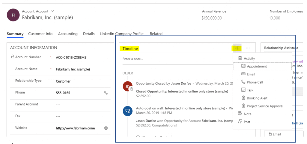 - Ability to take quick actions on Activity records and easily create records to add to the Timeline