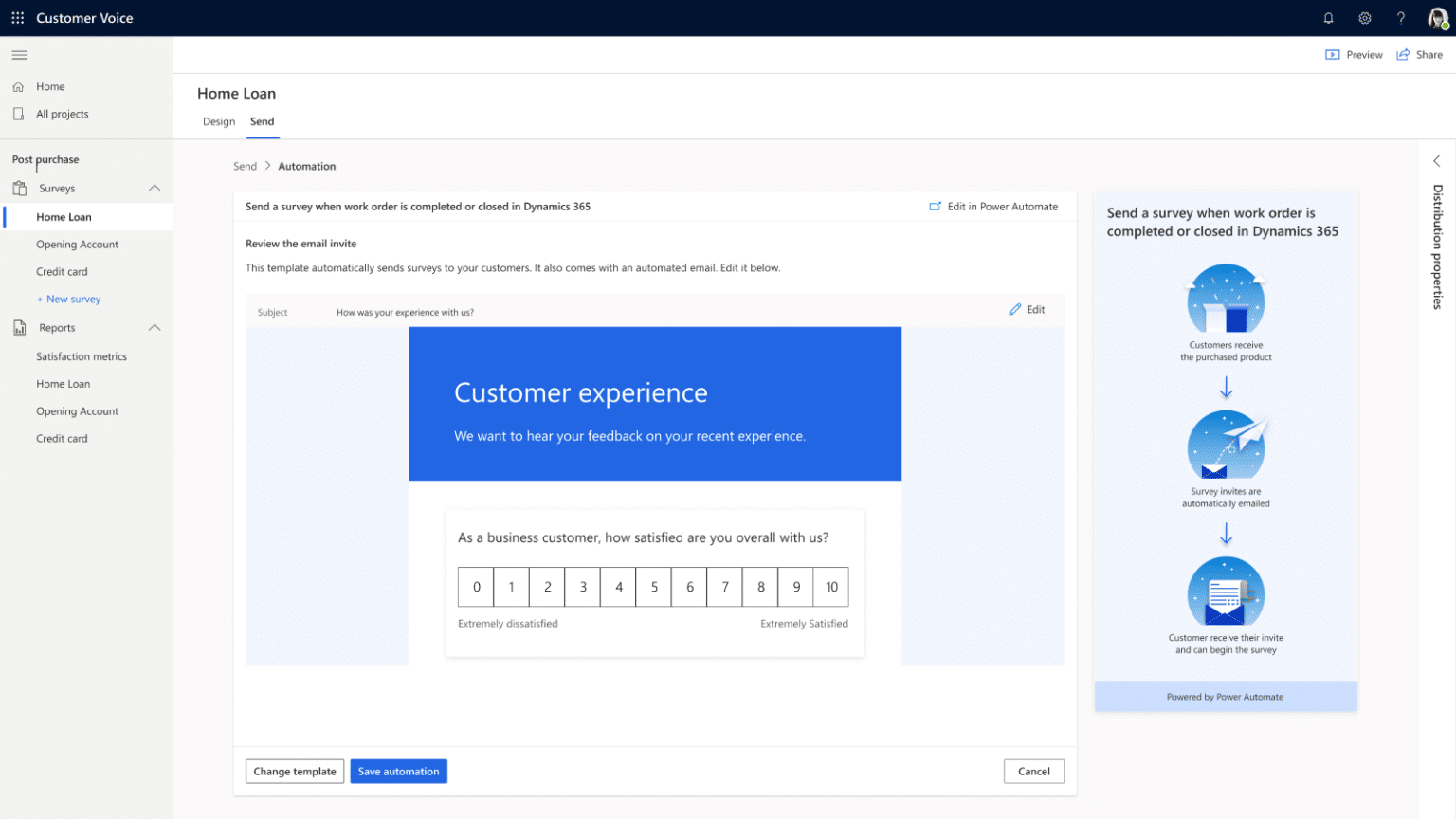 Microsoft Dynamics 365 Customer Voice is a feedback management tool to create surveys and track responses. It is designed to provide a more complete view of relationships, enhance insights that will lead to better experiences and allow you to make more informed business decisions.